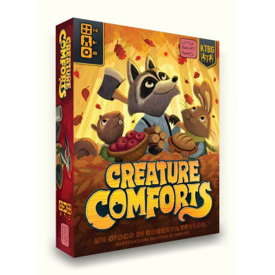 Trasforma la tua tana in un’accogliente casa invernale! È passato un altro anno e la neve si è sciolta, finalmente la primavera è tornata nella foresta. Tutti si stanno godendo il clima caldo. La vita nella foresta è molto divertente in questo periodo ma non è mai troppo presto per iniziare a prepararsi per il prossimo inverno; gli animali più saggi iniziano a raccogliere rifornimenti per il lungo freddo che li aspetta. Tra pochi mesi infatti le foglie cadranno, le temperature scenderanno nuovamente e faranno meglio ad esserne pronti! Trascorrerai molti mesi nascosto nella tua tana e vorrai quindi renderla più accogliente possibile. Una bella ciotola piena di zuppa calda, una comoda sedia a dondolo e alcuni giochi per far passare velocemente quelle buie giornate invernali. In Creature Comforts, trascorri la primavera, l’estate e l’autunno raccogliendo diverse risorse dalla foresta e spendendole per raccogliere oggetti che renderanno la tua casa più invitante mentre il mondo esterno è coperto da uno strato di neve. Ad ogni round invii i membri della famiglia in varie località nel tentativo di ottenere rifornimenti, scambiare merci al mercato e ricevere una mano dai viaggiatori in visita. Se non raggiungi l’obiettivo, imparerai una lezione e sarai preparato meglio la prossima volta. La famiglia che ha creato la tana più confortevole vince la partita.