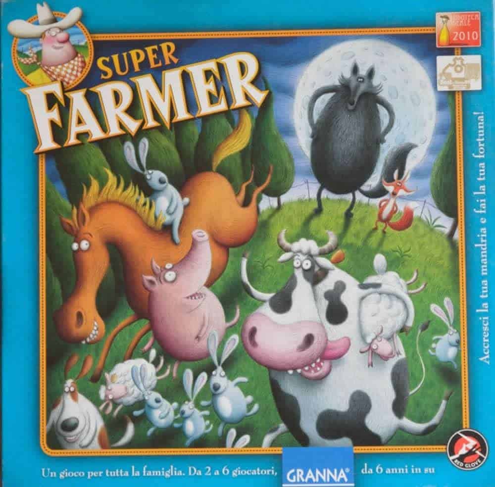 In Super Farmer sei un contadino e possiedi alcuni animali. Il tuo gregge si moltiplica e potresti, piano piano, costruire una bella fattoria, ma attenzione! I tuoi piani potrebbero venire distrutti in poco tempo se non sarai abbastanza cauto! Una volpe e un lupo stanno saccheggiando la zona e i tuoi animali potrebbero essere facili prede per questi cacciatori. Super Farmer è un gioco creato in maniera ingegnosa durante la Seconda Guerra Mondiale da un grande matematico Polacco, il professor Karol Borsuk. Le regole sono speciali ed eccezionali! Fu probabilmente il primo gioco ad usare un dado a 12 facce. Super Farmer è un gioco “economico” che aiuta ad apprendere come contare, predire, pianificare e gestire il rischio. Super Farmer è quindi utile a mettere in pratica queste capacità.